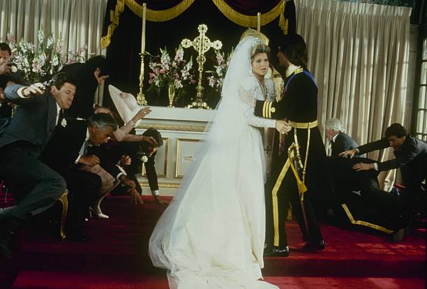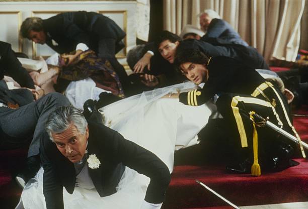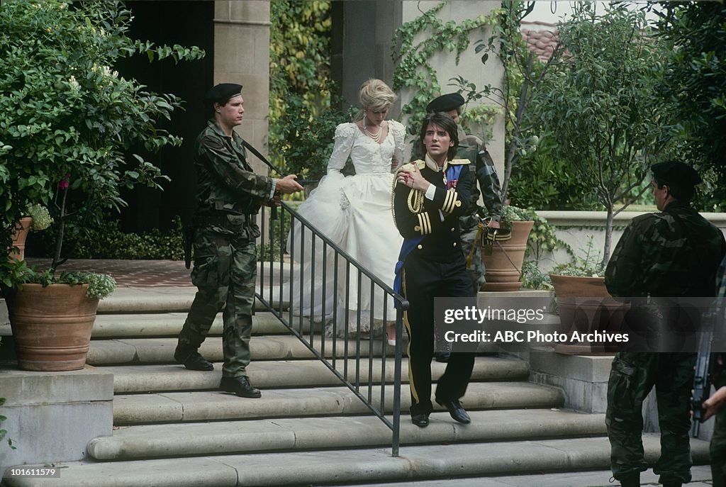The storyline was the infamous “wedding massacre” in which the warring Carrington and Colby clans gathered at a castle in Moldavia for the union of Praed’s Prince Michael to Amanda Carrington (Catherine Oxenberg). Mid-way through the ceremony, the castle was stormed by armed rebels attempting a bloody coups d’état, spraying the wedding party with bullets and apparently leaving them all for dead. Think Game of Thrones’ Red Wedding, but with considerably more taffeta and hairspray.