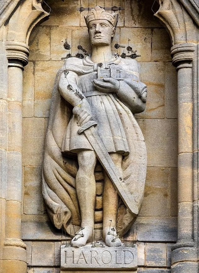 Скульптура Гарольда на фасаде Уолтемского аббатства в Эссексе